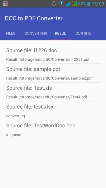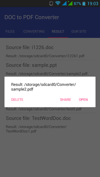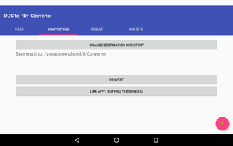 แอปพลิเคชั่นนี้ให้คุณแปลงไฟล์ DOC เป็นรูปแบบ PDF ข้อได้เปรียบหลักของแอปนี้คือไม่ต้องการการอนุญาตพิเศษใด ๆ ดังนั้นมันจึงไม่เพียงเข้ากันได้กับ Android เท่านั้น แต่ยังเข้ากันได้กับ iOS และ Mac OS X อีกด้วย แอปพลิเคชั่นนี้ใช้งานง่ายมากและคุณไม่จำเป็นต้องมีความรู้พิเศษใด ๆ ที่จะใช้มัน สิ่งสำคัญที่คุณต้องทำคือเลือกไฟล์ DOC ที่คุณต้องการแปลงเป็น PDF จากนั้นคุณจะสามารถเลือกไดเรกทอรีผลลัพธ์ที่คุณต้องการบันทึกเอกสารได้ คุณจะสามารถดูความคืบหน้าของการแปลงได้ในการแจ้งเตือน